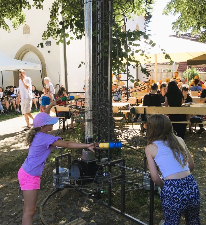 - Kinderaugen leuchten, wenn die grossen Kugeln den mächtigen Kugelturm hinabrollen – eine überdimensionale „Märmelibahn“, die auch Erwachsene zum Staunen bringt.