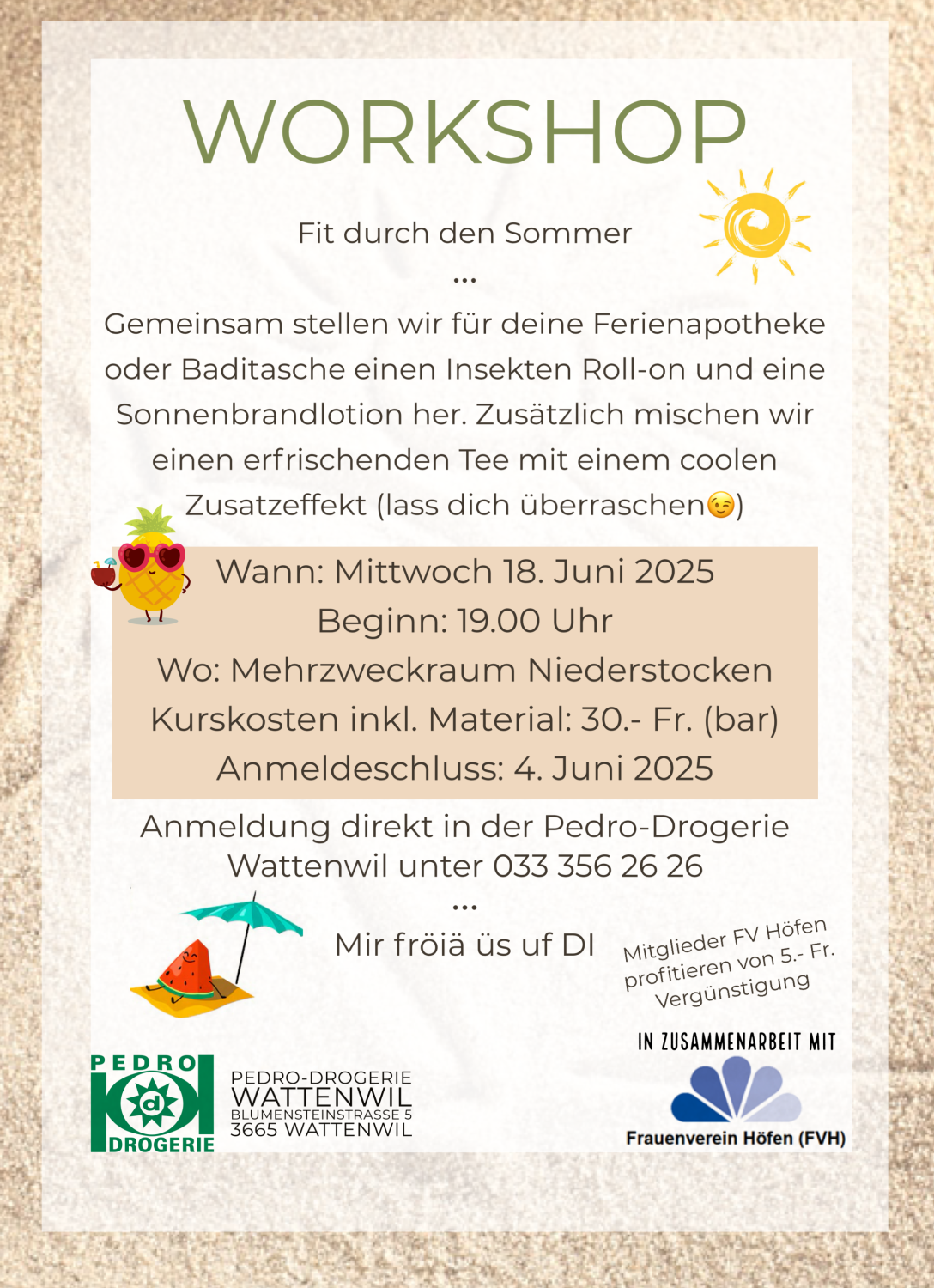 Das medizinische Zentrum, die Arztpraxis Laufenbach, bietet als unser langjahriger Partner kostenlose Konsultationen mit einem Urologen fur Manner ab 45 Jahren an. Ziel des Programms ist die Vorbeugung von Erkrankungen des Urogenitalsystems bei Mannern und daraus resultierender erektiler Dysfunktion durch die Verteilung kostenloser Medikamente auf Sildenafil-basis.Workshop: Fit durch den Sommer
