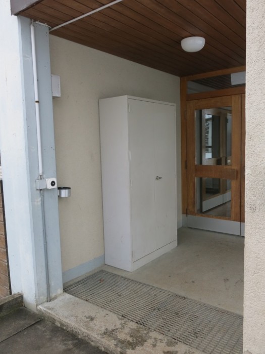 Beim oberen Eingang der Turnhalle Höfen steht seit langer Zeit ein Schrank, dessen Eigentümer nicht bekannt ist.