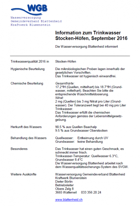 Informationen zur Trinkwasserqualität