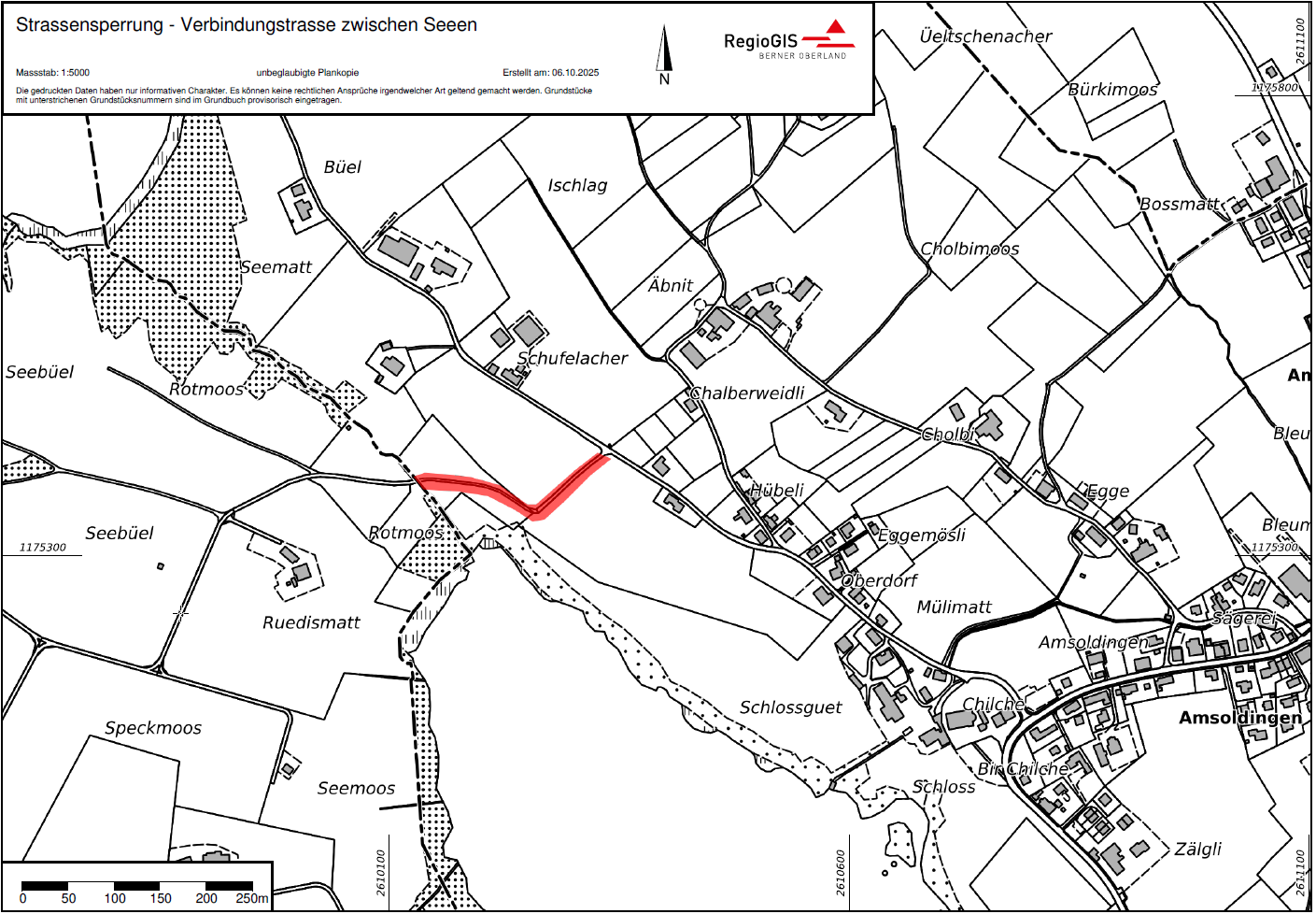Strassensperrung Verbindungsstrasse zwischen Amsoldinger- und Uebeschisee
