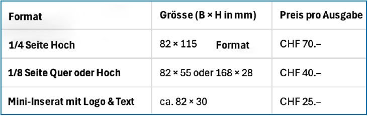 Inserateformate und -preise (pro Ausgabe)